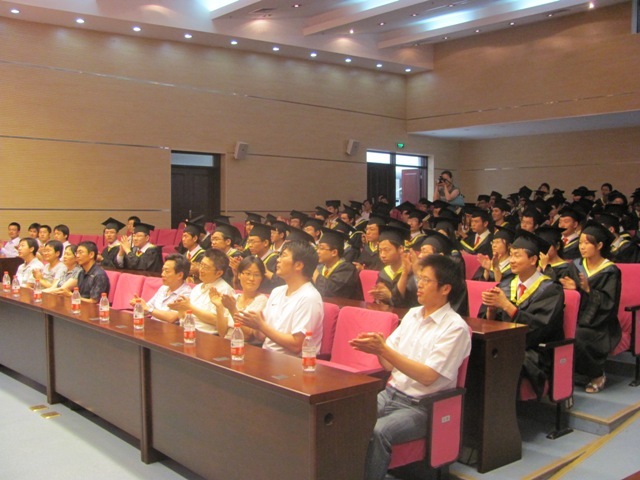 教师代表硕士生导师张保生副教授首先表达了对全体毕业生顺利取得学士学位的祝贺,肯定了同学们在大学四年的学习生活中所取得的丰硕成果。其次,他向同学们建议不要作弊,认真做事,快乐工作,微笑面对人生。最后,他饱含深情地对在座的所有毕业生说:“常回母校看看!常回家看看!”